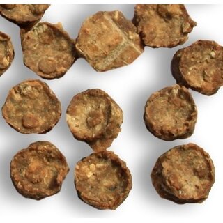 Diese Forelle Minitaler aus 100 % Forellenfleisch sind die ideale Wahl für Training und Ausbildung. Dank ihrer handlichen Größe eignen sie sich auch perfekt als Leckerchen oder kleiner Belohnungshappen – für kleine wie große Hunde.
