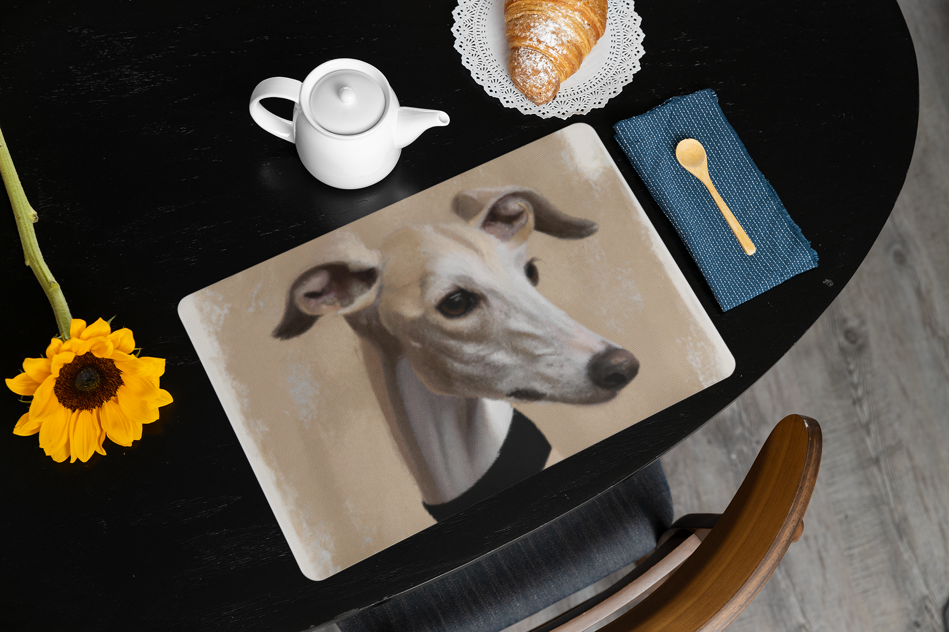 Tolles Tischset mit einem Motiv von einem Galgo ...wobei es könnte auch als Iggy / Italienisches Windspiel durchgehen , oder was meint ihr ?